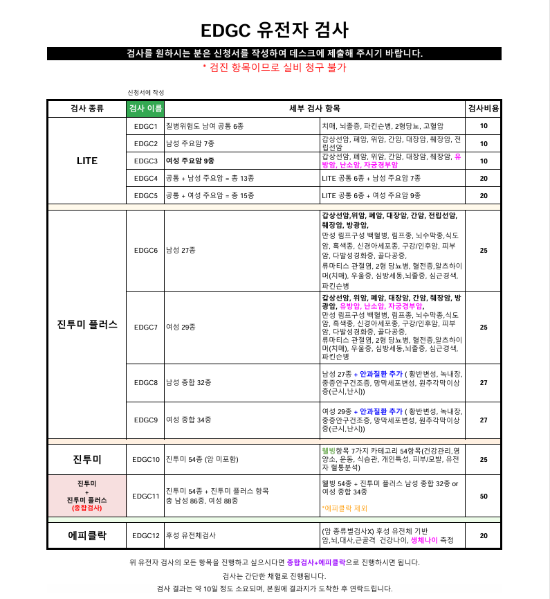 유전자 검사 비용 안내