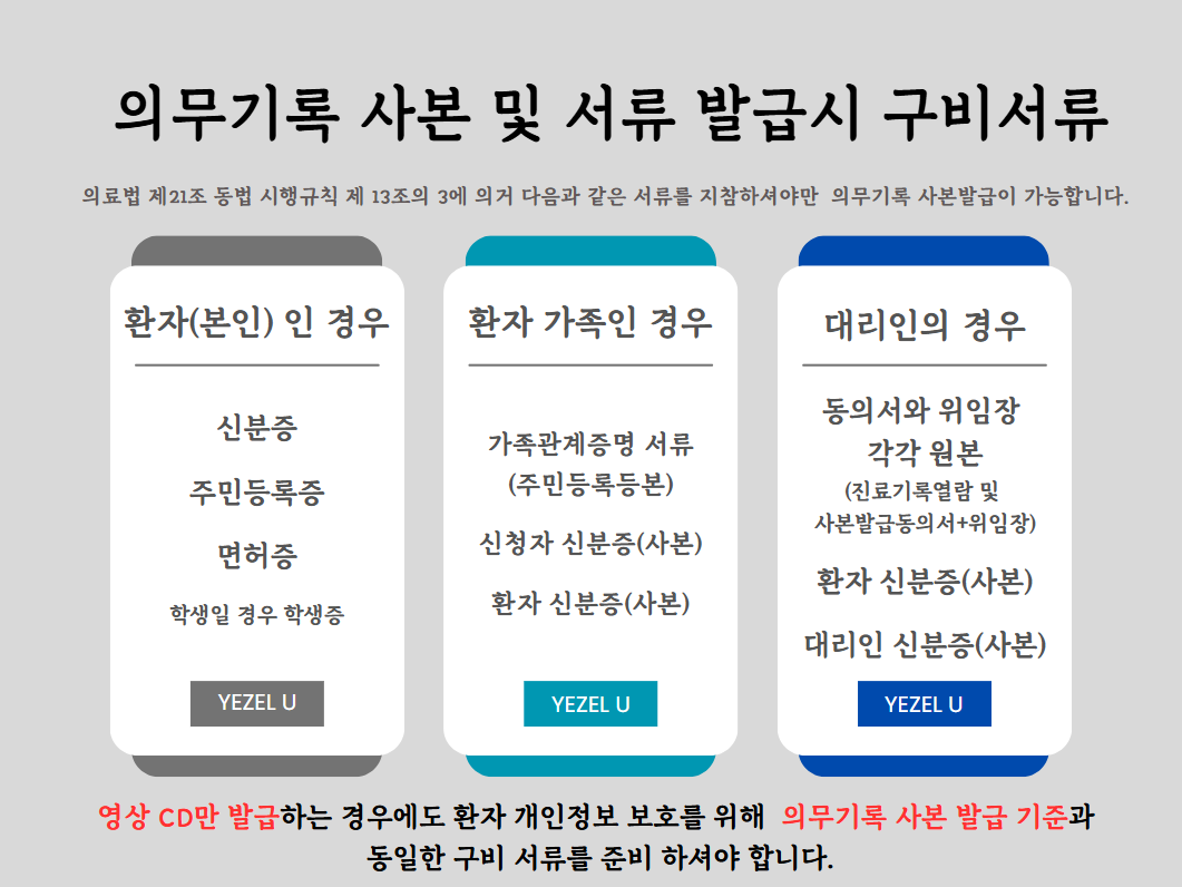 안녕하세요 예젤유의원 입니다. 대리인 서류 발급 관련 안내 드립니다.